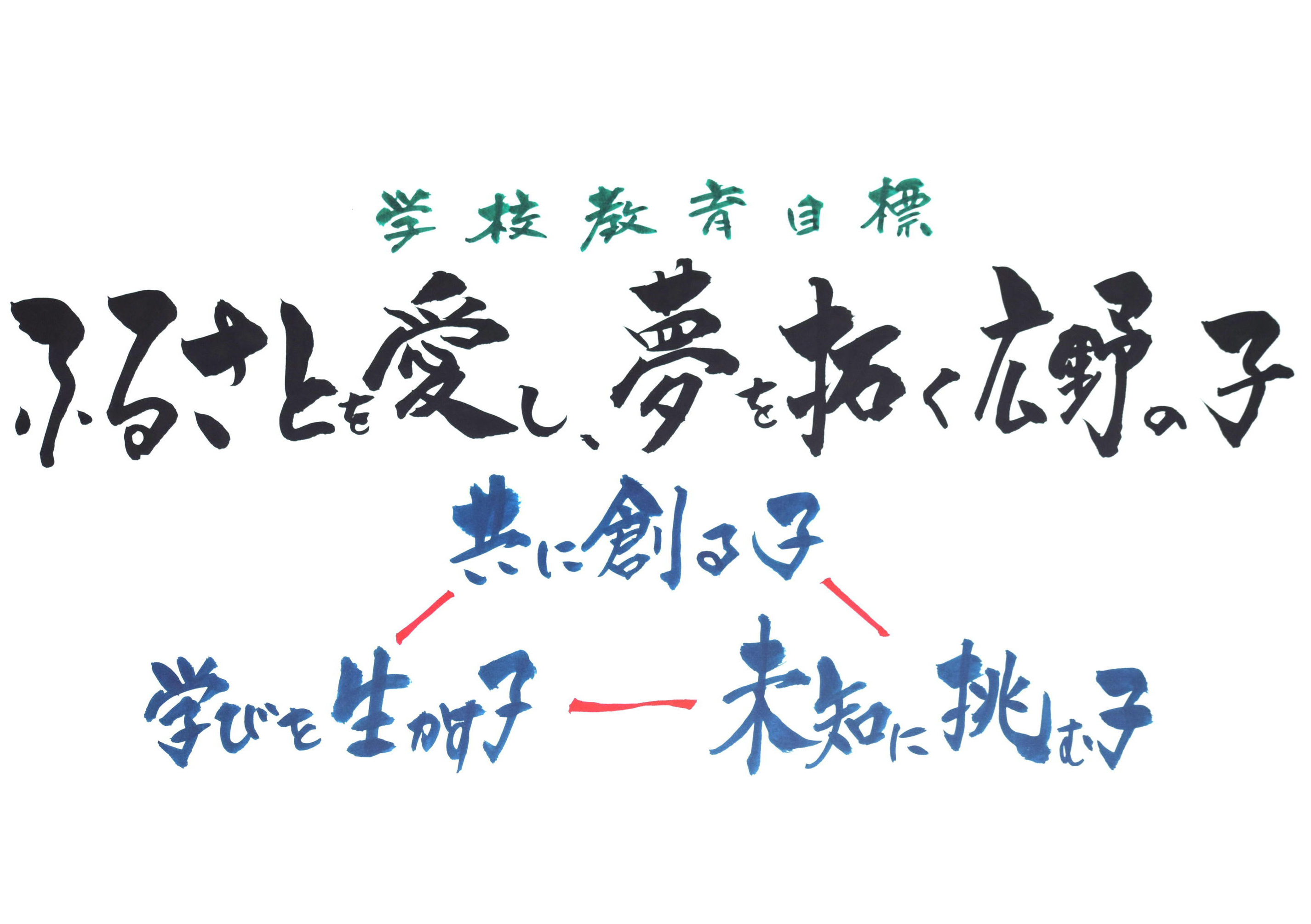 教育理念~21世紀の担い手として、人間尊重の精神を基盤に、心豊かでたくましく生きる子どもの育成を地域とともに推進する学校教育を創造する。