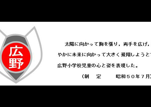 太陽に向かって胸を張り、両手を広げ、伸びやかに未来に向かって大きく飛翔しようとする広野小学校児童の心と姿を表現した。(制定 昭和50年7月)